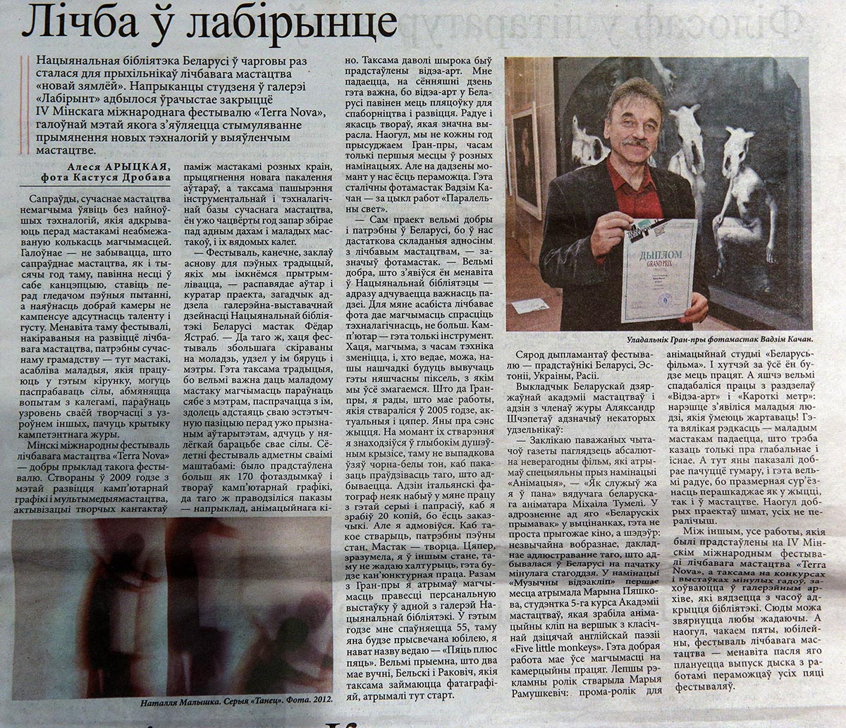 Сегодня в газете " Лiтаратура i мастацтва"