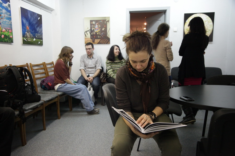 Ни с кем (из ранее выставлявшихся в клубе авторов), Валерий Ведренко так долго не вёл (полуторачасовый!) диалог о представленных работах, а в завершении ещё и обменялся телефонами для сотрудничества!
