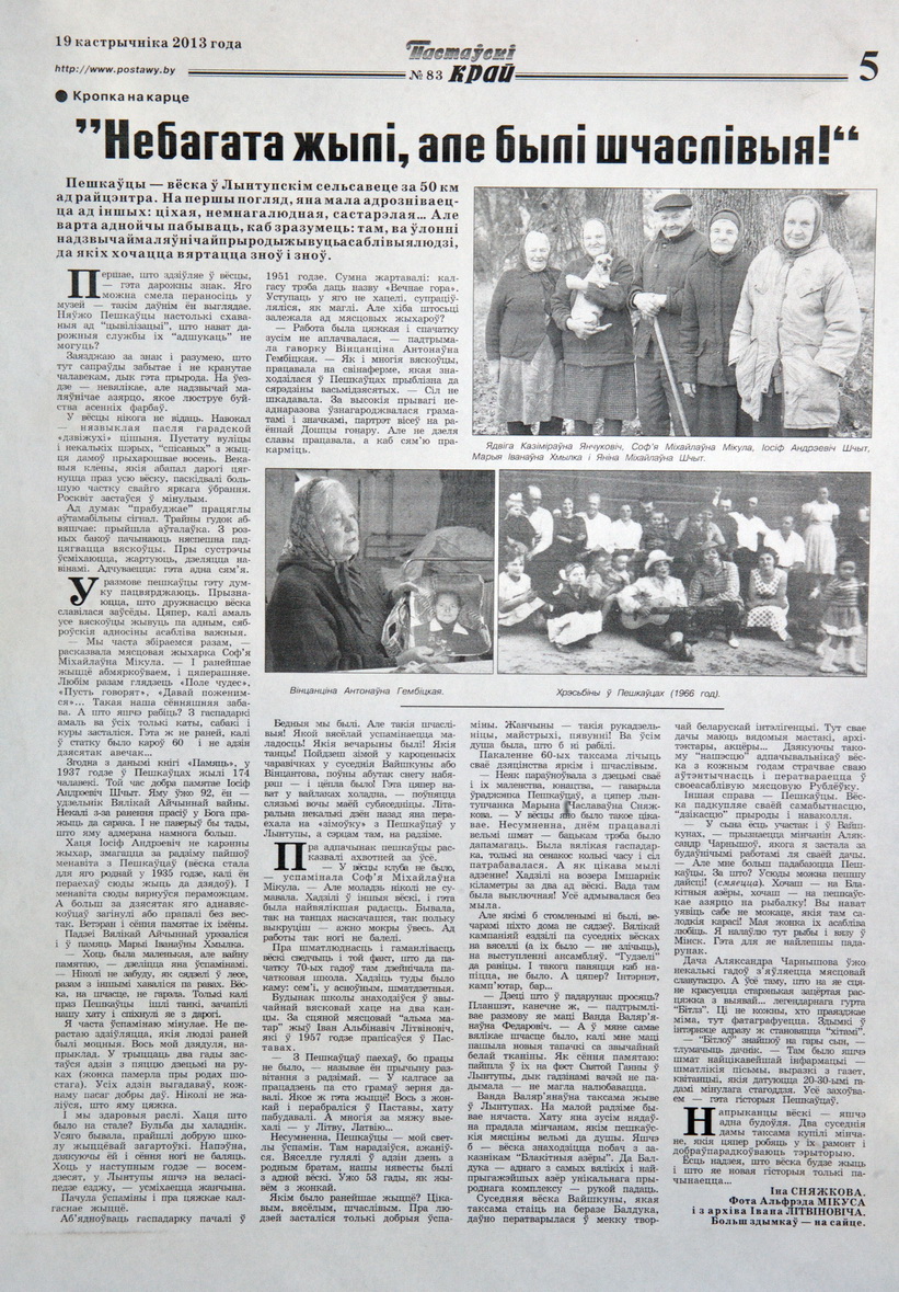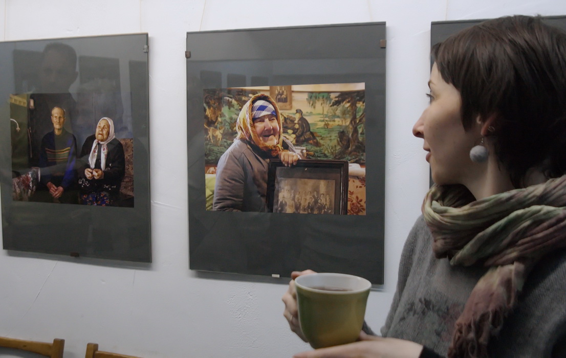 Позднее по времени (20-00) открытие выставки Альфреда МИКУСА «Дорогие мои старики…», плюс насыщенный фотособытиями вечер (мастер классы «Трагикомические истории в живописи, объеме и фотографии» от Альгиса Гришкявичюса и «Не разговоры о фотографии, а само изображение – вечная ценность» от Гитиса Скуджинскаса) органично и планомерно распределили волны постоянных (и впервые пришедших ) в галерею любителей фотографии по времени. Толчеи не наблюдалось, но количество заинтересованных зрителей, ознакомившихся с новым проектом Альфреда МИКУСА , оказалось значительным. Атмосфера конструктивного, заинтересованного обсуждения живого фотопроекта, имеющего все предпосылки вырасти в незаурядное фотографическое ( и не только) описание лиц уходящей эпохи, не отпускала пришедших почти до полуночи! Искренний интерес, профессиональные глубокие ценные замечания от Владимира БЛИНОВА, Виктора СЕДЫХА, Надежды Дегтярёвой, Ларисы ФИНКЕЛЬШТЕЙН,- просто бесценны! Да! Творческий союз корреспондента газеты «Пастаускi край» Инны СНЕЖКОВОЙ, которая прекрасно знакома с жизнью сельчан и к которой они относятся с полным доверием, плюс чувство кадра нашего коллеги, активного фотокорреспондента, члена НФК «МiНСК» Альфреда МИКУСА , оказался продуктивным и очень и очень своевременным. Повторюсь,- очень толковый проект!! Молодцы!!!