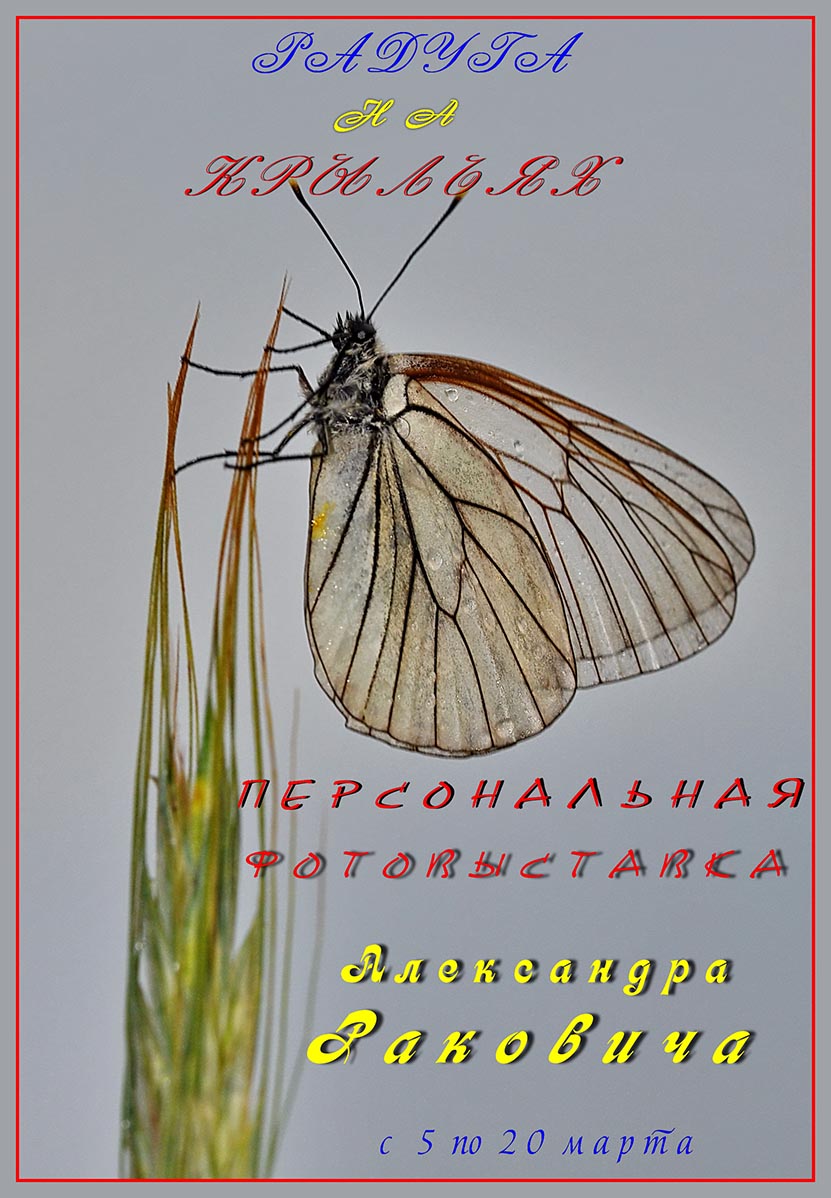 С 5 марта по 20 марта 2014, в Миске в "Доме кино" (Толбухина,18) представлена персональная выставка фотографий Александра Раковича "Радуга на крыльях". автор посвящает ее международному женскому дню "8 марта"