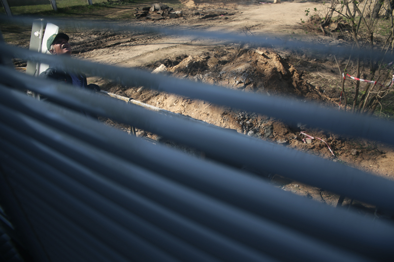 на площадке.