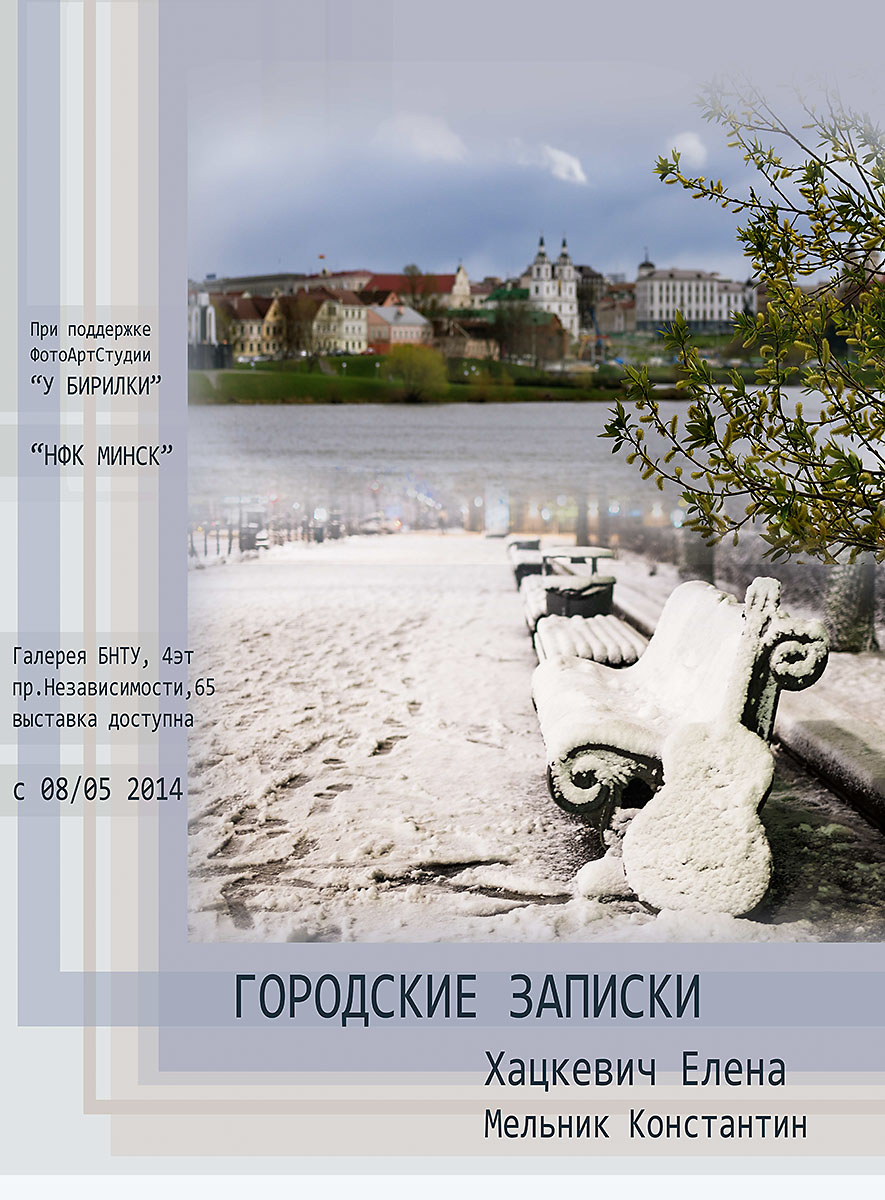В галерее главного корпуса БНТУ на 4 этаже открылась выставка фотографий молодого белорусского фотографа, представителя нового поколения НФК "Минск", студентки БНТУ Елены Хацкевич. На выставке так же предсталено несколько фотграфий начинающего фотографа-любителя Мельника Константина. Выставка приурочена к празднику Победы и призвана показать наш город, каким он стал, благодаря подвигу героев Великой Отечественной войны. Кстати, на 3 этаже галереи главного корпуса БНТУ демонстрируются портреты ветеранов, снятые, признанным мастером портретной съемки Евгением Залужным в рамках большого проекта "Последний призыв".