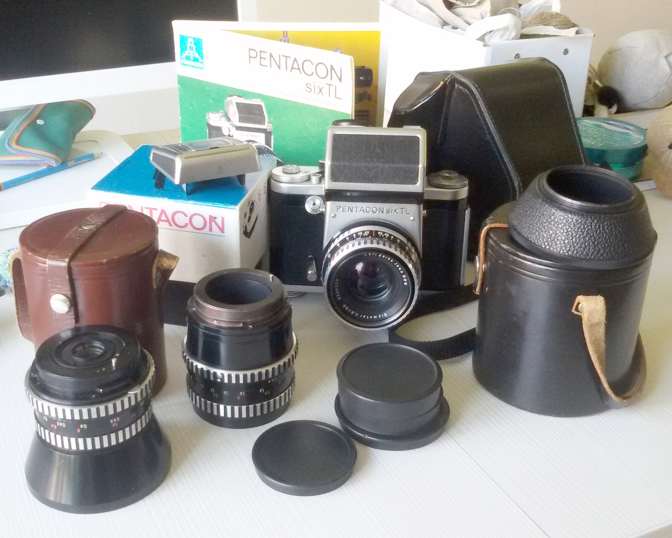 Pentacon Six TL (ГДР).Пленочные зеркальные фотоаппараты Pentacon Six TL производились в ГДР компанией Pentacon с конца 60-х до 1990 года. Эта красивая и удобная среднеформатная камера отличается удобными элементами управления, очень приятной фокусировкой, с возможностью замены шахты на пентапризму, своей надежностью и прекрасной оптикой. Формат кадра-6х6 см. Затвор шторный. Диапазон выдержек на камере — от 1/1000 до 1 секунды +В. Имеется автоспуск.