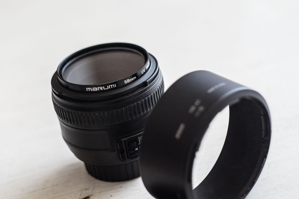 Оригинальная комплектация: бленда, чехол, 2 крышки, коробка и руководство. Дополнительно: светофильтр Marumi UV (Haze) 58mm.