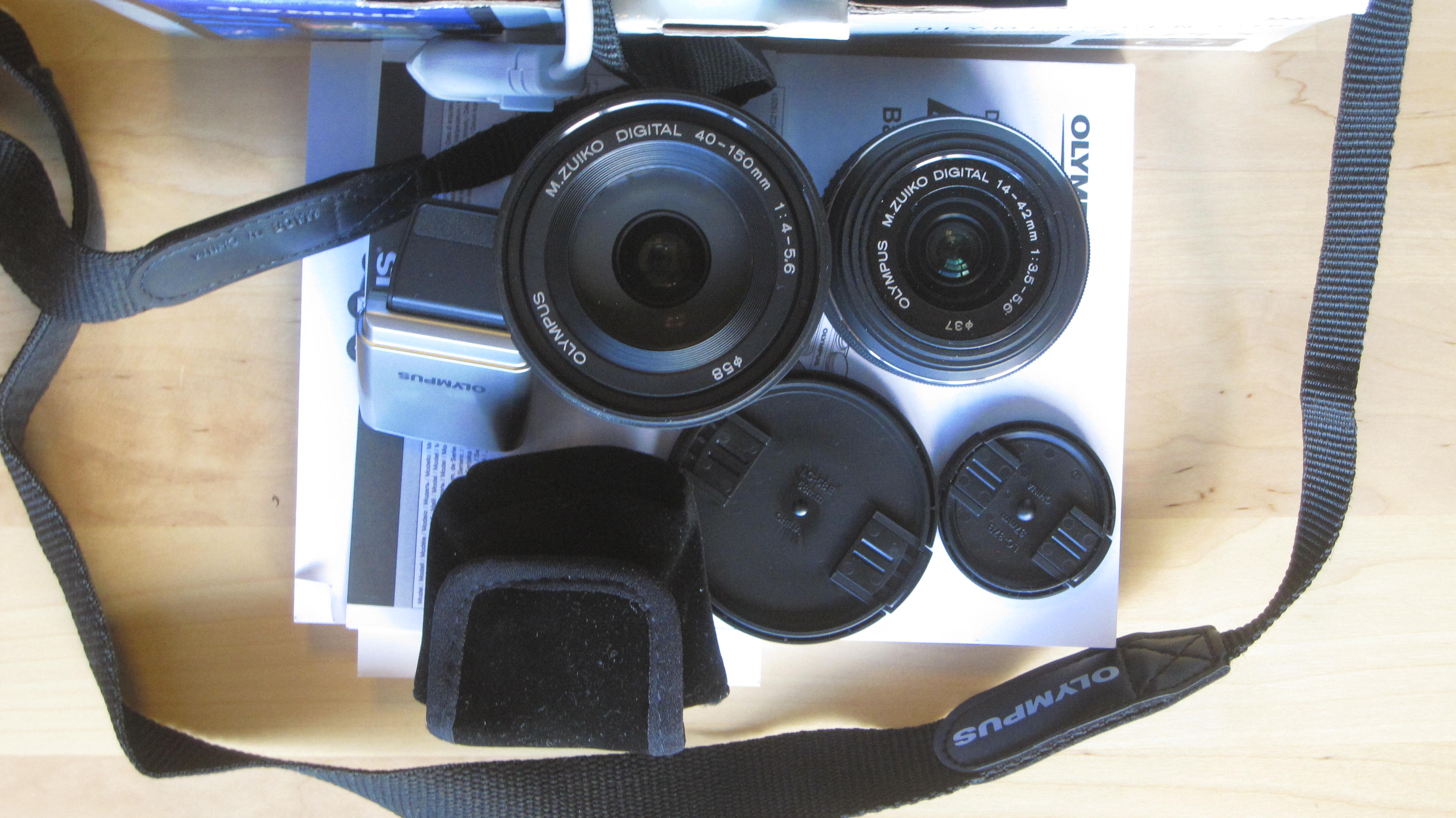 Olympus e-pl5 полный коробочный комплект . Два объектива Zuiko , 14-42 \ 1: 3,5-5,6 ; 40-150 \ 1: 4-5,6 . Вспышка , зарядное.Все крышечки , кабели , заглушки , бумажки - книжки , коробка.В состоянии нового , практически не использовался , так бывает( нет смысла подробно фоткать).В Минске .29 - 9117700. 700 рублей