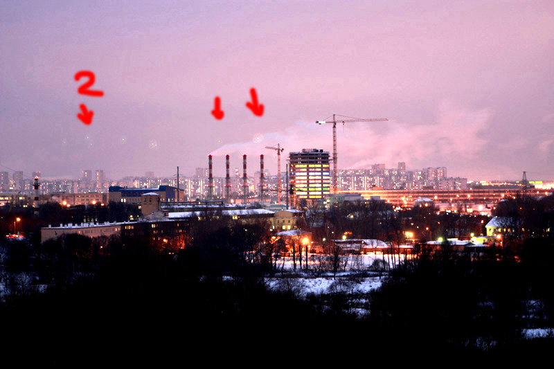 Через часа 3 слил фото на комп, смотрю и не пойму что за точки в небе появились. Думал наверное около часа, потом обратил внимание на зеркальность от света.