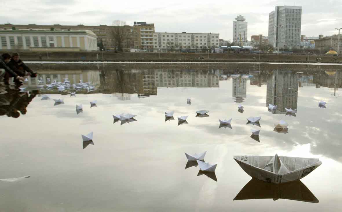 Молодежь запускает кораблики в солидарность с политзаключенными.